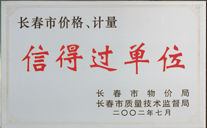 荣获2016年度“守合同 重信用”公示单位 长春市工商行政管理局